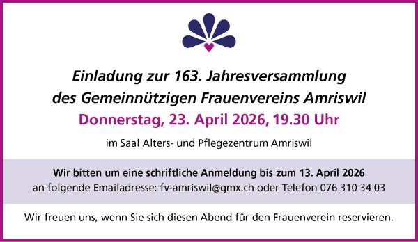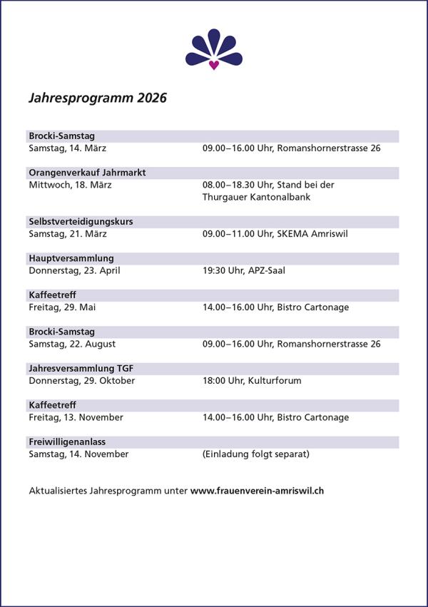 Weitere Infos gibt Gabi Fischer, Tel. 079 964 60 50, gerne bekannt.